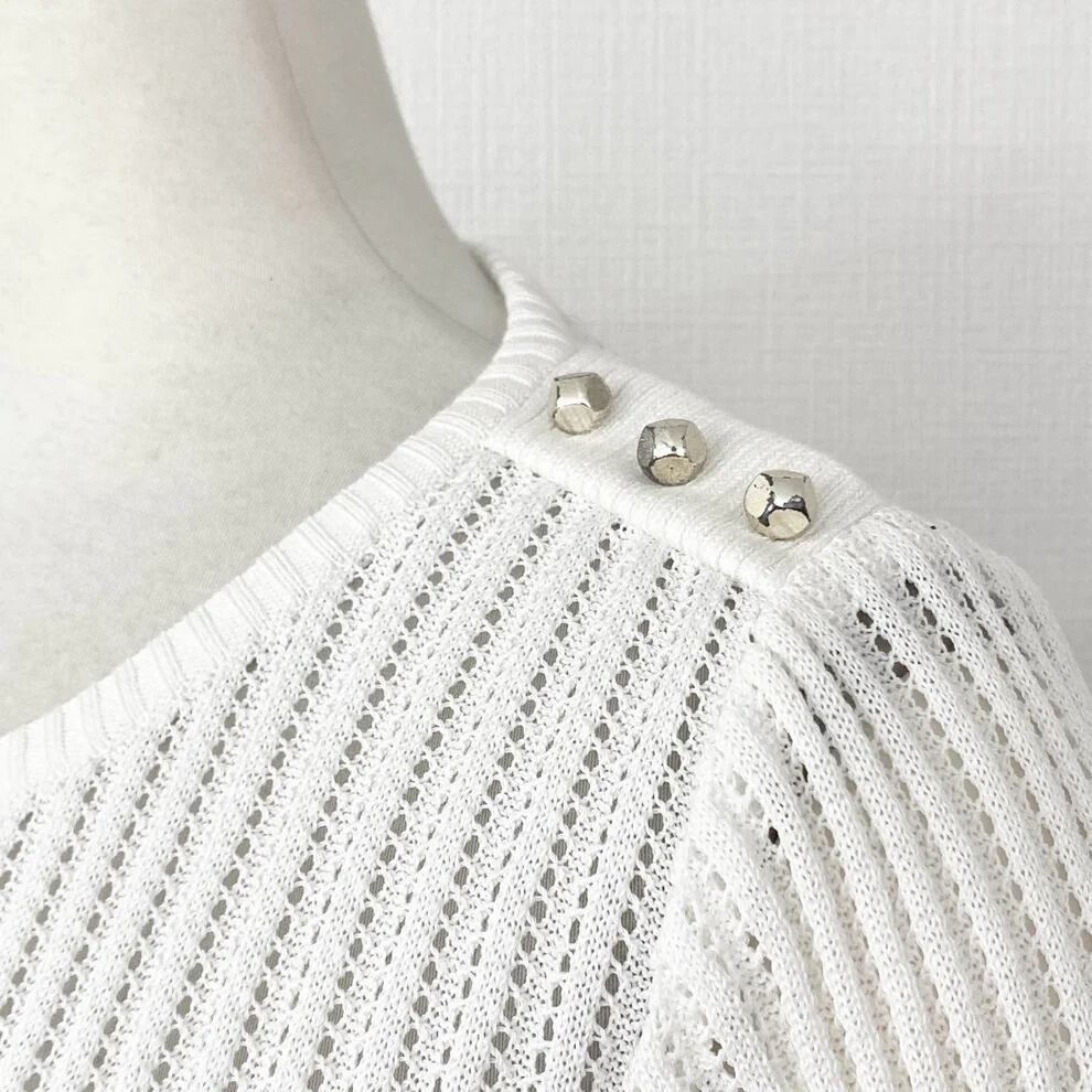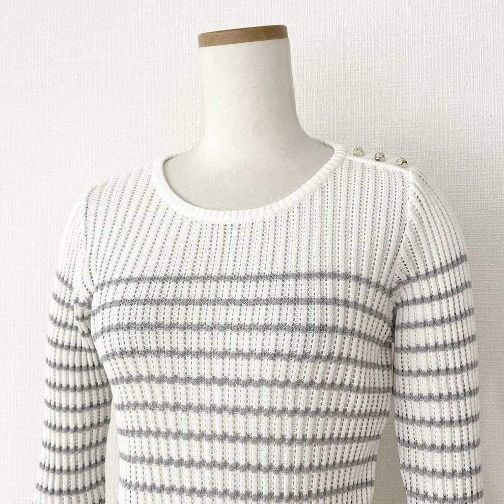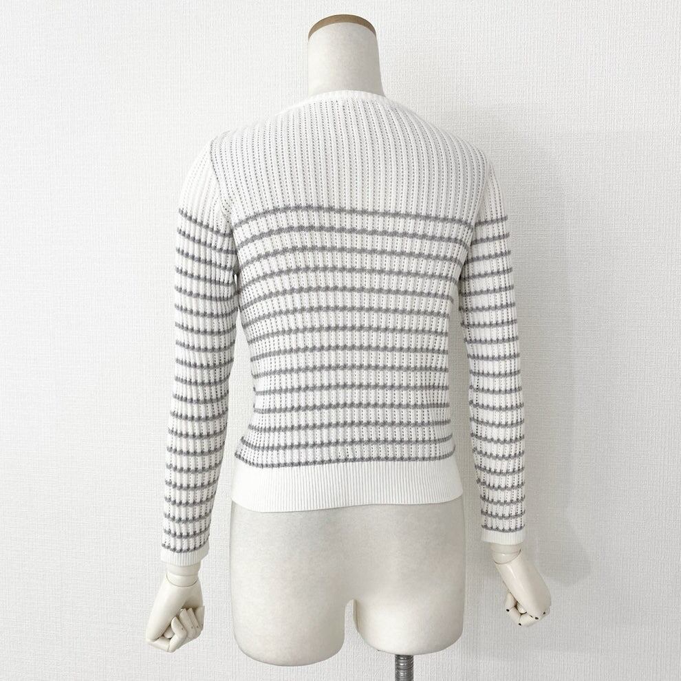 【USED】美品 Rene ルネ かぎ編みニット ボーダー 七分袖 アイボリー×グレー 大人可愛い 上品ニット 36サイズ