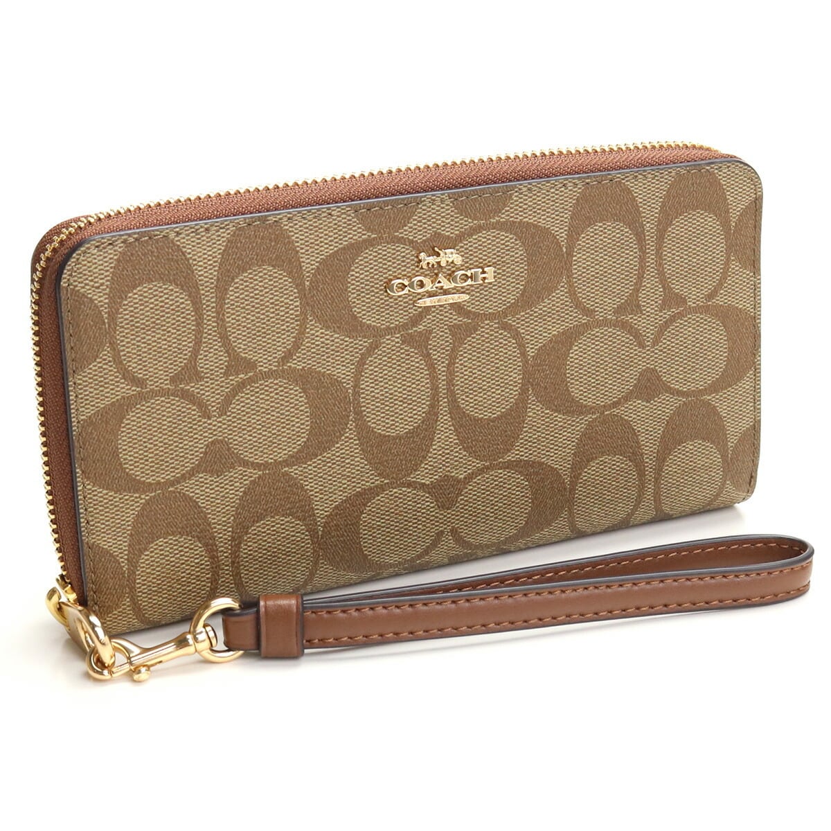 COACH シグネチャー柄リストレットウォレット(ブラウン×ゴールド)