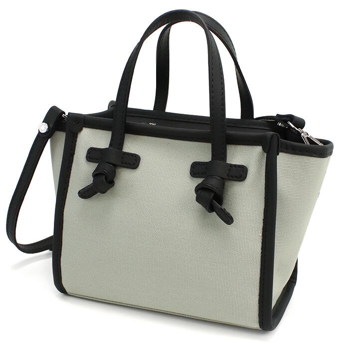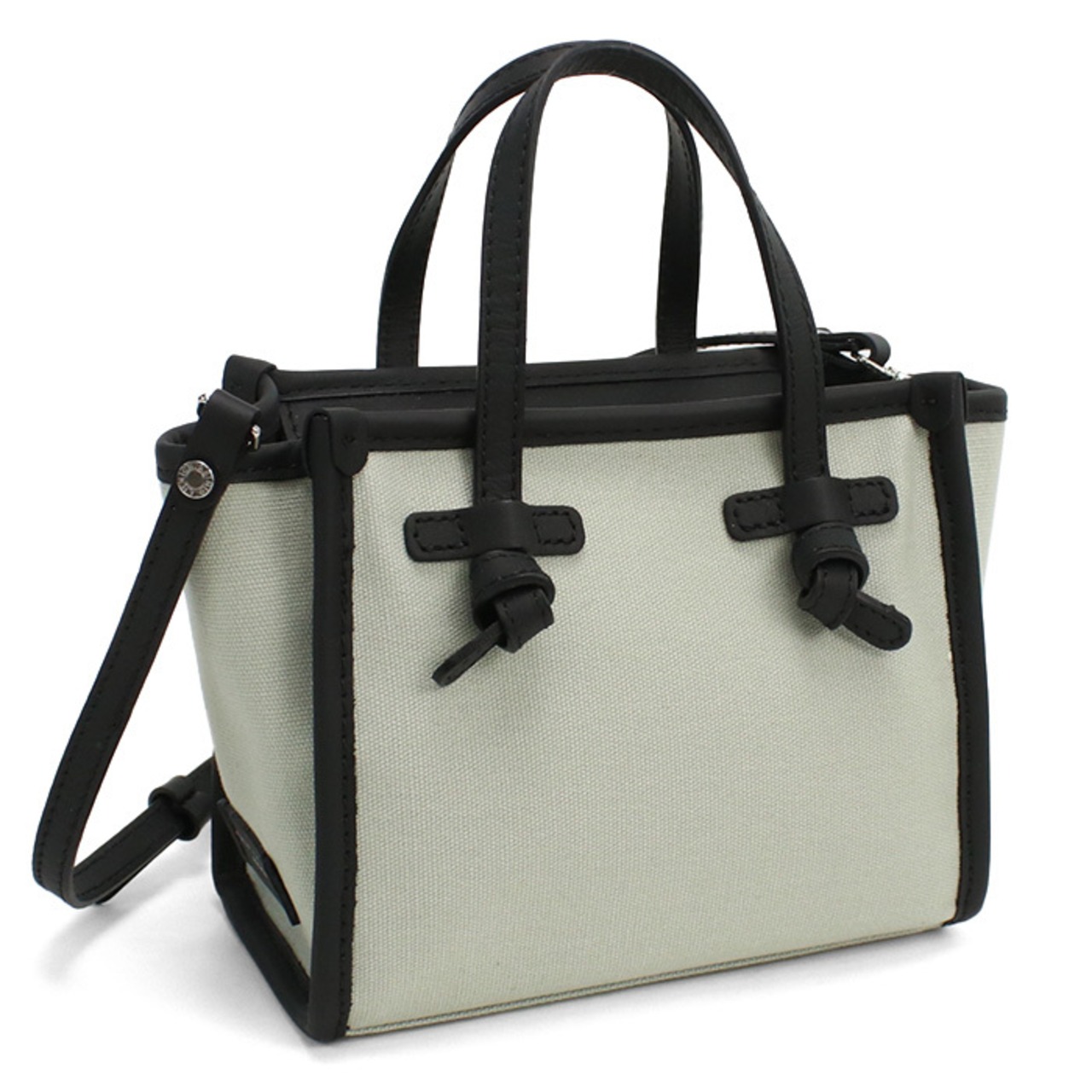 GIANNI CHIARINI ジャンニキアリーニ 2WAYトートバッグ ショルダー付き レザー×キャンバス 大人ナチュラル
